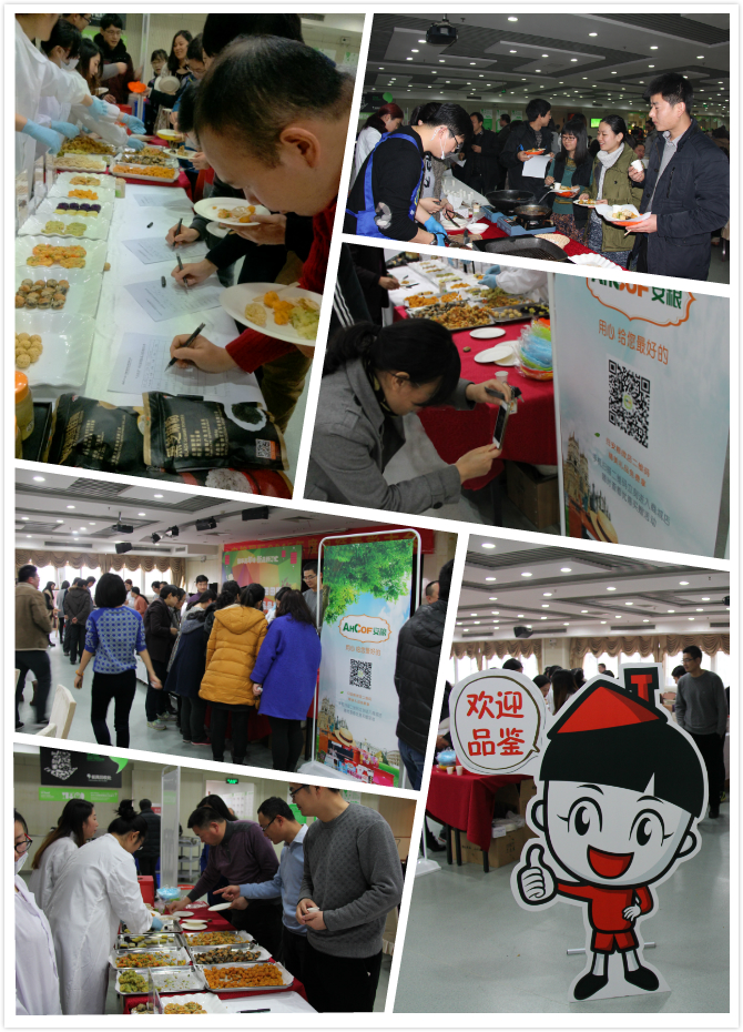 為了進一步推廣“田田屋”、“安可?!眱纱笃放破煜碌娜庐a(chǎn)品, 安糧實業(yè)經(jīng)過精心策劃、認真組織,在安糧員工餐廳開展了一場別開生面的新品品鑒和互動活動。此次活動重點展示了包括冷凍調(diào)理食品、進口紅酒、健康養(yǎng)生食品、進口調(diào)理肉食在內(nèi)的四大系列新品。冷凍調(diào)理食品中的香口薯芝、五彩蔬菜烙、什錦魷魚圈、菇米花、香菇魷魚餅、花桂薯緣、翡翠蔬菜圈;健康養(yǎng)生食品中的雜糧粉飲品、茶樹菇、黑木耳、干筍衣、干香菇等產(chǎn)品均是首次亮相。大家一邊品嘗著盤中的美食、杯中的美酒,一邊認真填寫調(diào)查問券對產(chǎn)品的色澤和口味做出評價。許多員工還對購買產(chǎn)品產(chǎn)生了濃厚興趣,紛紛在現(xiàn)場掃描微店二維碼,并開心地參加了抽獎、拿到了心儀的贈品。