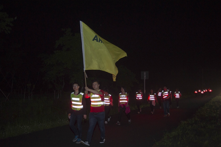 活動(dòng)分徒步、騎行兩個(gè)項(xiàng)目,以濱湖新區(qū)渡江戰(zhàn)役紀(jì)念館為起訖點(diǎn),自西向東、環(huán)巢而行,沿途先后歷經(jīng)肥東縣、巢湖市、廬江縣、肥西縣、濱湖新區(qū)。第一階段徒步毅行由解放碑出發(fā),行程10公里,參與人數(shù)700余人,12點(diǎn)前后陸續(xù)抵達(dá)半島碼頭接力點(diǎn)。第二階段全程150公里,由兩支自行車騎行大隊(duì)與四支徒步大隊(duì)組成。在第一階段隊(duì)伍全部抵達(dá)后,第二階段隊(duì)伍中午12:30騎行隊(duì)伍出發(fā),按照45km/棒開(kāi)始接力。22日晚7時(shí)許,騎行隊(duì)伍抵達(dá)預(yù)定地點(diǎn)。19:30,徒步隊(duì)伍接力開(kāi)始出發(fā),挑戰(zhàn)夜行,每15公里交接一棒。22日夜的巢湖岸邊,夜黑如墨,風(fēng)大雨急,氣溫驟降,四組徒步隊(duì)員們頂風(fēng)冒雨,不畏艱難、相攜相伴,堅(jiān)毅前行,如時(shí)完成!
