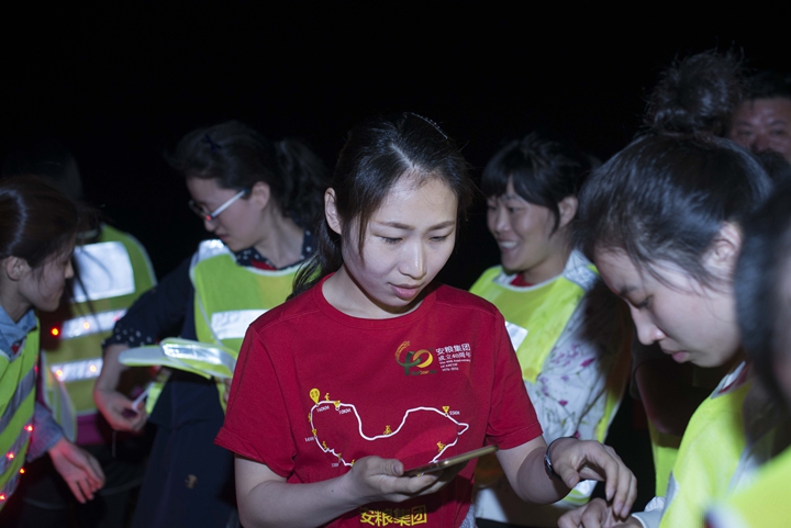 頂烈日出發(fā),迎風(fēng)雨歸來(lái), 不經(jīng)歷風(fēng)雨,怎能見(jiàn)彩虹!本次活動(dòng)旨在通過(guò)比拼耐力、團(tuán)隊(duì)協(xié)作的戶外青春毅行方式,感懷安糧集團(tuán)四十年艱苦發(fā)展歷程,詮釋和回顧安糧集團(tuán)四十年坎坷發(fā)展之路!毅行隊(duì)伍匯聚成一股紅色浪潮,浩浩蕩蕩,與春潮共涌,隨鷗鷺爭(zhēng)翔。或漫步,或疾走,徒步者三五相攜,騎行者如離弦之箭。追憶往昔,暢想未來(lái),個(gè)個(gè)喜笑顏開(kāi),人人意氣風(fēng)發(fā)。披朝露,追夕照,抵烈日,沐風(fēng)雨。攜手前行有春光作伴,夜幕沉沉我們從不孤獨(dú),火熱的太陽(yáng)燃燒出安糧人的激情,突來(lái)的風(fēng)雨洗禮出我們的團(tuán)結(jié)和堅(jiān)毅。毅行隊(duì)伍一路向前,徒步騎行從容接力,通過(guò)24小時(shí)的一路堅(jiān)持,穿過(guò)環(huán)巢一市三縣,不斷向目標(biāo)邁進(jìn),向勝利進(jìn)發(fā)!
