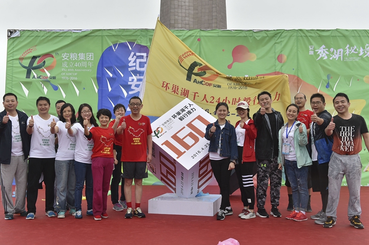 為慶祝安糧集團(tuán)成立40周年,2016年4月22-23日,為期兩天、歷程160公里的安糧集團(tuán)環(huán)巢湖千人毅行接力活動(dòng)在美麗的巢湖之濱熱情上演。本次活動(dòng)以“安糧聚力,邁向卓越”為主題,共有近千人參與,不僅有公司系統(tǒng)在職員工和退休老領(lǐng)導(dǎo)、老同志,國(guó)貿(mào)集團(tuán)范陽(yáng)董事長(zhǎng)還帶領(lǐng)國(guó)貿(mào)集團(tuán)的20多名同仁前來(lái)助陣。