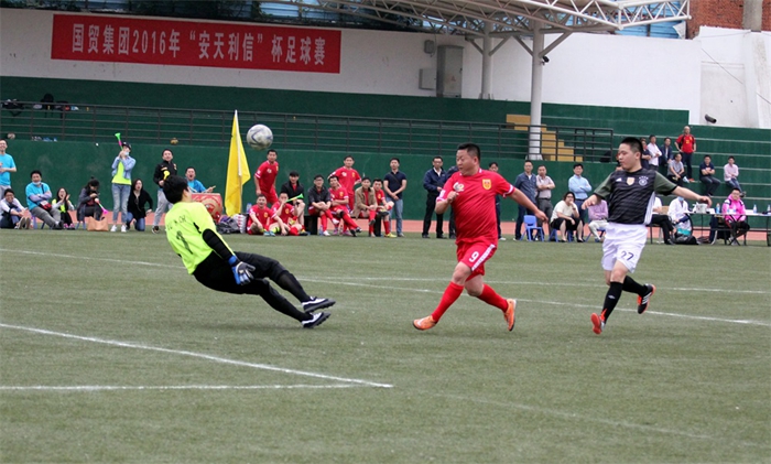 2016年5月13日,國貿(mào)集團(tuán)2016年“安天利信杯”足球賽在合肥市體育運(yùn)動學(xué)校拉開戰(zhàn)幕,共有來自國貿(mào)系統(tǒng)的7支代表隊參加角逐。安糧集團(tuán)足球隊在首輪與華安公司代表隊的對話中取得開門紅,以6:2的比分輕取對手,在全取3分的同時,憑借凈勝球優(yōu)勢領(lǐng)跑首輪積分榜。