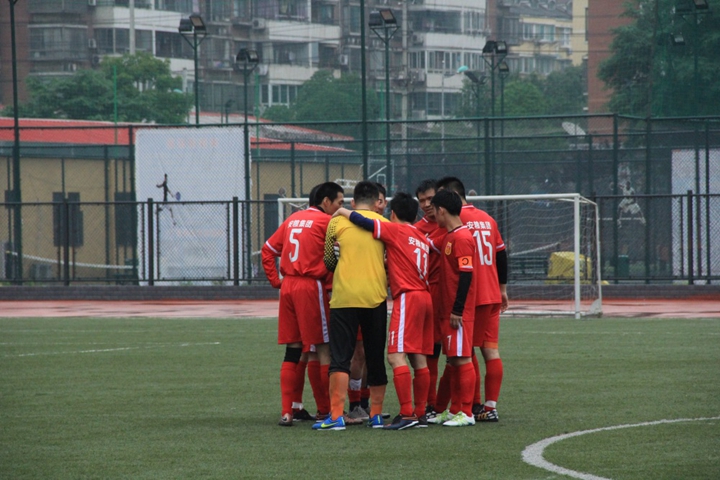 經(jīng)過(guò)一周的休整,2016年6月3號(hào)下午,安糧足球隊(duì)迎來(lái)本屆國(guó)貿(mào)集團(tuán)足球聯(lián)賽的第三個(gè)對(duì)手:國(guó)貿(mào)集團(tuán)聯(lián)隊(duì)。國(guó)貿(mào)集團(tuán)聯(lián)隊(duì)擁有多名經(jīng)驗(yàn)豐富的高水平外援加盟,實(shí)力強(qiáng)大。比賽日天公依然不作美,但是惡劣的天氣并沒有影響公司對(duì)比賽的重視,安糧控股、興業(yè)和小貸的同事冒雨前來(lái)為安糧健兒加油。賽前形勢(shì)對(duì)我方十分不利,隊(duì)長(zhǎng)方波左腿肌肉拉傷,不能首發(fā)出場(chǎng),其他幾位主力球員身體不適,也給這場(chǎng)艱難的比賽增加了更多的不確定性。
