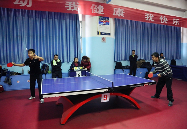 本屆比賽團(tuán)體項(xiàng)目中,帶傷出征的陳建軍率領(lǐng)新隊(duì)員王豹、胡松先后與省進(jìn)出口公司、達(dá)豐公司、輕工公司、技術(shù)公司等幾支隊(duì)伍展開爭奪。由于賽程安排緊密,選手們從比賽乍一開始便展開了激烈的乒臺對話。你削一個弧線,我推你一板,你擺開架勢扣我一分,我瞅準(zhǔn)機(jī)會回敬你一球。乒乒乓乓,有如沙場交兵,難分高下;乓乓乒乓,場外掌聲雷動,此起彼伏。經(jīng)過四輪精彩紛呈的賽場較量,安糧集團(tuán)代表隊(duì)成功突圍進(jìn)入八強(qiáng),并最終獲得第四名。