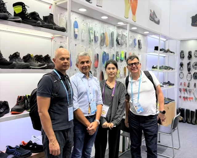 在工具類展區(qū),安糧在常規(guī)安全鞋產(chǎn)品基礎上,新增勞保手套、多功能剪刀、冰爪、反光材料等多款新產(chǎn)品,全面覆蓋戶外安全防護場景,凸顯“專業(yè)性”與“全面性”雙重優(yōu)勢。為讓客戶直觀感受產(chǎn)品品質(zhì),展區(qū)采用原木色層板與洞洞板靈活組合的裝修設計,方便客戶觸摸、體驗產(chǎn)品的材質(zhì)、工藝與功能,如拉扯勞保手套的耐磨度、體驗多功能剪刀的剪切效果、查看反光材料在模擬黑暗環(huán)境下的警示亮度。目前已有來自法國的戶外用品品牌商提出樣品寄送需求,另有來自智利的的安全防護設備經(jīng)銷商明確表達長期合作意向。