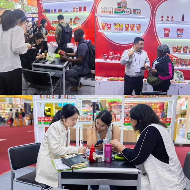 在食品展區(qū),本次以番茄沙司系列為核心,不僅推出青椒洋蔥味、蘑菇味等多款差異化創(chuàng)新口味,更搭配PET瓶裝、帶嘴立袋兩種新型包裝,融合獨特的南美風(fēng)味,憑借高顏值與優(yōu)口感贏得全球采購商青睞,市場反饋熱烈。截至目前,已與非洲、中東、東南亞及“一帶一路”沿線核心市場的采購商,初步達(dá)成十個貨柜的番茄沙司采購意向,覆蓋多區(qū)域主流消費需求。